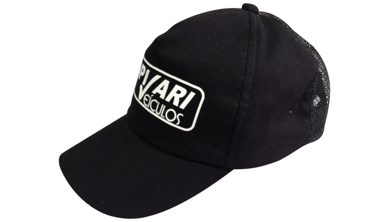 Modelo americano serigrafado com tela na parte atrás. Opções de fechamento em fivela de metal, velcro ou regulador plástico. Tamanhos: adulto e infantil