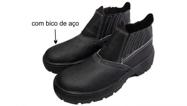 Botina de segurança com bico de aço; Confeccionada em couro Numeração do 37 ao 45